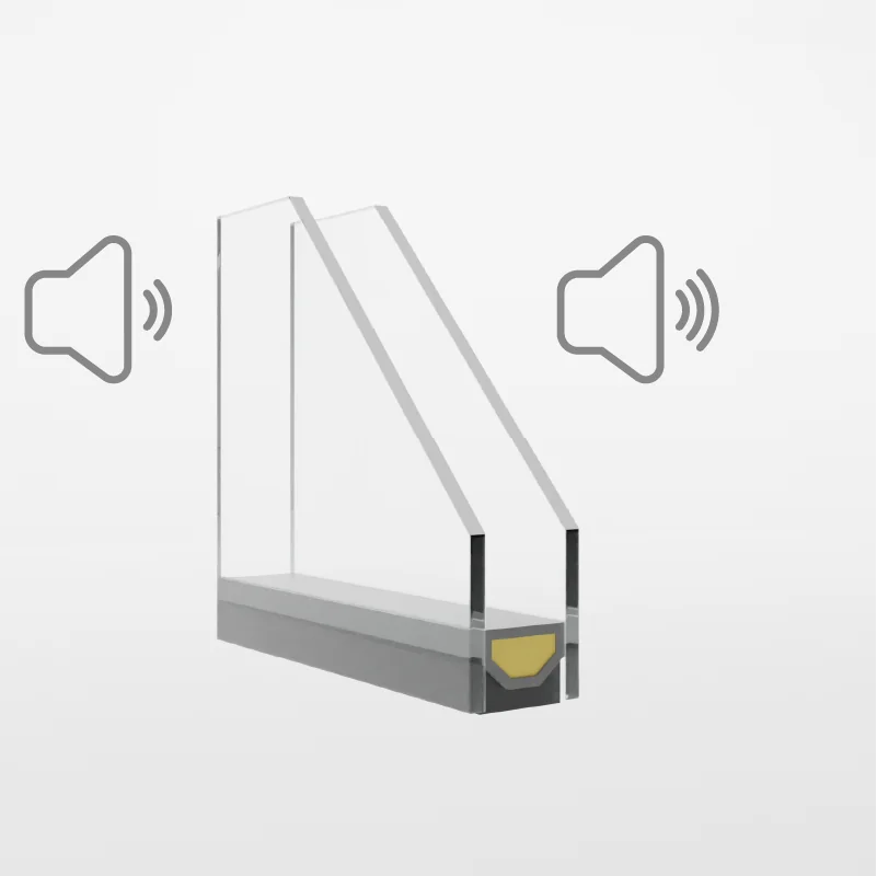 Różne grubości tafli i zwiększona przestrzeń między szybami zapewniają szerokopasmową redukcję hałasu. Niezbędna przy ruchliwych ulicach, torach i lotniskach.