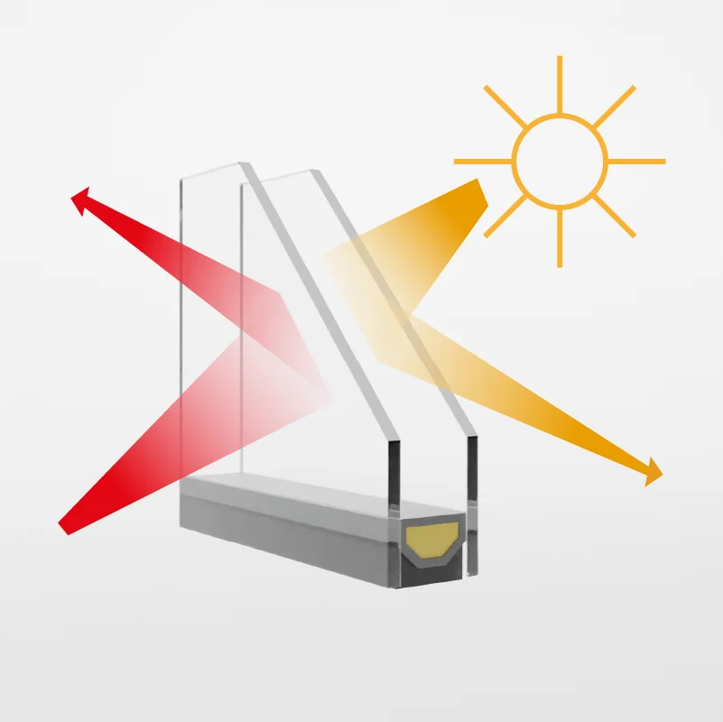 Dzięki powłoce z tlenku metalu odbija promieniowanie słoneczne i nadaje elewacji subtelny, metaliczny połysk. Skuteczna ochrona przed przegrzaniem od strony południowej.